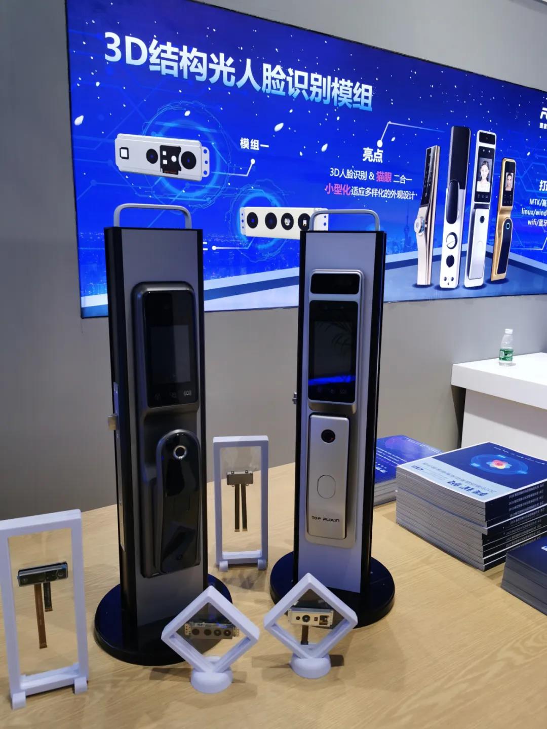 阜時科技攜帶兩款3D結(jié)構(gòu)光模組參展。本屆智能門鎖參展客戶中,有一大半使用了阜時研發(fā)的3D結(jié)構(gòu)光人臉識別方案。這是上百名研發(fā)人員經(jīng)過兩年打磨,將自主研發(fā)硬件和獨有活體識別算法相結(jié)合,可定制的性能佳、品質(zhì)優(yōu)、成本低、迭代快的完整解決方案。已有多家客戶智能鎖產(chǎn)品成功發(fā)布,并在此次展會閃亮登場。