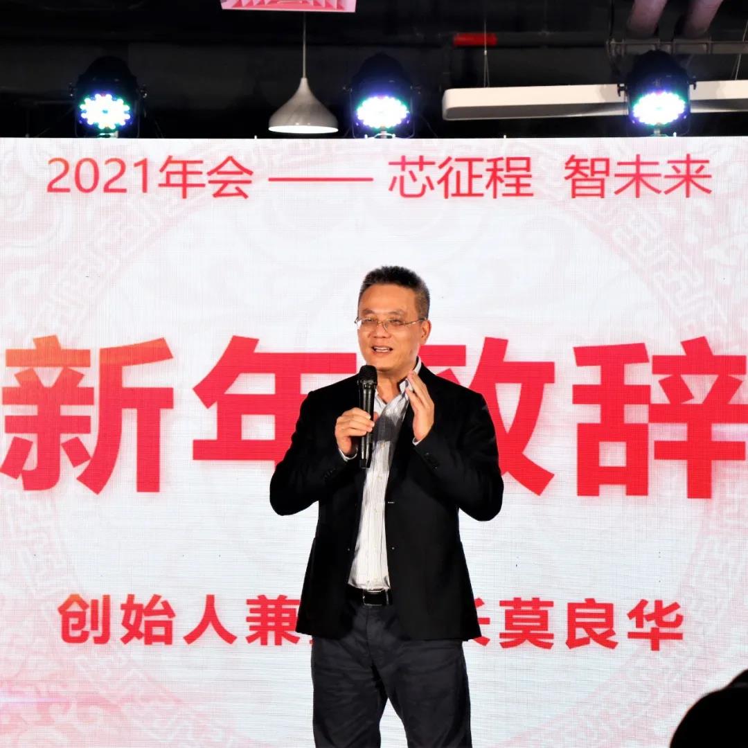 年會伊始,阜時科技創(chuàng)始人兼董事長莫良華發(fā)表了新年致辭。